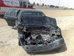 باشر الحادث المزدوج فرقة من آمن الطرق والمرور وفرقة من الدفاع المدني والهلال الأحمر.