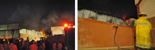 استنفرت الجهات الأمنية أمس الأول إثر حريق هائل نشب في مستودع شهير لتخزين الفواكه وفرضت طوقاً أمنياً والذي استمرت حتى أمس، فيما باشرت 12 فرق إنقاذ وإطفاء تساندها فرق من الدوريات الأمنية مكافحة الحريق، كما تواجدت في الموقع فرق طبية من الهلال الأحمر وعاملون من الشؤون الصحية.