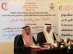 دشن مدير عام التربية والتعليم بمنطقة المدينة المنورة الدكتور تنيضب الفايدي مشروعاً (في كل مدرسة مسعف متطوع)، وذلك في حفل أقيم أمس الأول بمدرسة أبو بكر الصديق المتوسطة، بحضور مدير فرع هيئة الهلال الأحمر السعودي سعود مشرف والدكتور صلاح أبا الخيل مدير الصحة المدرسية. وقد أشاد مدير فرع الهلال الأحمر في كلمة له بتعاون إدارة التربية والتعليم، مشيراً إلى أن المشروع جاء بمباركة صاحب السمو الملكي الأمير فيصل بن عبد الله بن عبد العزيز رئيس الهيئة، وأوضح أن المشروع يعتبر الأول من نوعه على مستوى المملكة، وينفذ لأول مرة بالمنطقة.