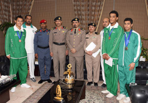 من جانبه وجه رئيس الاتحاد السعودي لقوى الأمن الداخلي اللواء مصطفى الجار الله شكره وتقديره لمدير الأمن العام على تكريمه للاعبين ومتابعته القريبة لرياضة قوى الأمن مؤكداً أن ذلك سيكون دافعاً معنوياً لأسرة الاتحاد السعودي لقوى الأمن في برامجه المقبلة , في ظل توجيهات النائب الثاني لرئيس مجلس الوزراء وزير الداخلية الأمير نايف بن عبدالعزيز ونائب وزير الداخلية الأمير أحمد بن عبدالعزيز ومساعد وزير الداخلية للشؤون الأمنية الأمير محمد بن نايف.