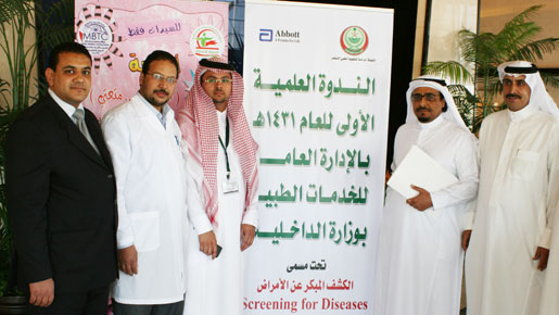 نيابة عن الدكتور عبدالرحمن بن عبدالله بن معمر مدير عام الإدارة العامة للخدمات الطبية بوزارة الداخلية افتتح الدكتور عبدالله بن عبدالعزيز الذياب مدير إدارة المستشفيات بالإدارة العامة للخدمات الطبية ورئيس لجنة التعليم المستمر يوم أمس فعاليات ندوة الكشف المبكر عن الأمراض والتي أقيمت بصالة الاجتماعات بفندق أولف أنترناشيونال بالطائف واستعرض المتحدثون عن سبل الكشف المبكر عن بعض الأمراض كالنظر والسمع والنمو عند الأطفال والأمراض النفسية للبالغين كما تطرق المتحدثين عن طرق الكشف المبكر لسرطان الثدي والقولون والبرستات والسرطانات عند النساء والسكر والضغط وارتفاع الدهون.