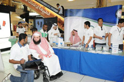 شهدت الحملة التي نظمها نادي «إرادة» التابع لبرنامج الأمير محمد بن فهد لتنمية الشباب بالدمام مؤخراً عن الإعاقات ومسبباتها في مجمعين تجاريين بالخبر والظهران بمشاركة نادي الخبر التطوعي حضوراً مميزاً من الجمهور ونالت استحسان الجميع لما احتوت عليه من فعاليات منوعة ومعلومات مفيدة، وكان البرنامج نظم أول حملة شبابية في المنطقة الشرقية استمرت 5 أيام وحملت شعار «الحياة إرادة». وأوضح رئيس النادي خالد الهاجري أن النادي أطلق الحملة بهدف توعية المجتمع بأنواع الإعاقات ومسبباتها ونشر الوعي بين فئاته حول كيفية التواصل مع ذوي الاحتياجات الخاصة من خلال فعاليات الحملة المتعددة التي جمعت ما بين التوعية والترفيه لكافة أفراد الأسرة إضافة إلى إبراز الجانب الإبداعي للمعاقين باختلاف أنواعه وأشكاله. وأشار الهاجري إلى أن الحملة احتوت على العديد من الأركان والجهات المشاركة مثل هيئة حقوق الإنسان وجمعية حقوق الإنسان والجمعية السعودية للعلاج الطبيعي بالمنطقة الشرقية.