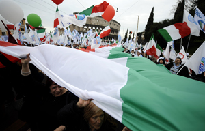 تظاهر مئات الآلاف من أنصار رئيس الوزراء الإيطالي سيلفيو برلوسكوني بعد ظهر السبت في روما استعداداً للانتخابات الإقليمية في 28 و29 آذار- مارس. وانطلقت المسيرة التي رفعت فيها الأعلام الإيطالية وأعلام حزب برلوسكوني «شعب الحرية» من الوسط التاريخي للعاصمة الإيطالية.