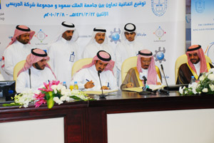 وتأتي اتفاقية الشراكة مع جامعة الملك سعود تتويجاً لهذه الجهود، وقد أكد الأستاذ عبد الرحمن الجريسي أن الاتفاقية مع الجامعة هي انعكاس صادق لما تقوم به الجامعة من جهود كبيرة للتأسيس لاقتصاديات المعرفة بالمملكة حتى أضحت الجامعة مبدعة ومتميزة مما جعلها ترتقي بشكل لافت للنظر في التصنيف العالمي للجامعات، مضيفاً أن الجامعة التي عاصرها منذ التأسيس إلى يومنا هذا أصبحت مفخرة للوطن.