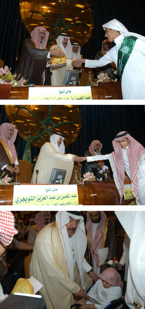 وفي ختام الحفل سلّم معالي نائب الحرس الوطني المساعد الشيخ عبدالمحسن بن عبدالعزيز التويجري الجوائز على الطلبة الفائزين بالمسابقة.