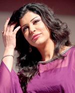 الممثلة السورية جومانا مراد عضو لجنة تحكيم الأفلام الأجنبية في مهرجان مسقط السينمائي أثناء حضورها حفل ختام المهرجان. |