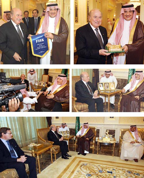 وعبر رئيس الاتحاد الدولي لكرة القدم جوزيف بلاتر عن سعادته بزيارته للمملكة منوهاً بالعلاقات التي تربط الاتحادين السعودي والدولي ووصفها بالاستثنائية حيث تمتد لأكثر من 35 عاماً.