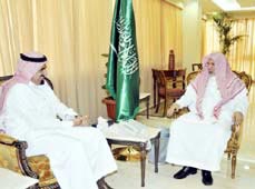 بحث الدكتور صالح بن عبدالله بن حميد رئيس المجلس الأعلى للقضاء بعد ظهر أمس بمكتب معاليه بمقر المجلس بالرياض مع الدكتورعبدالله بن عبدالرحمن العثمان مدير جامعة الملك سعود أوجه التعاون بين المجلس والجامعة في المجال القضائي.