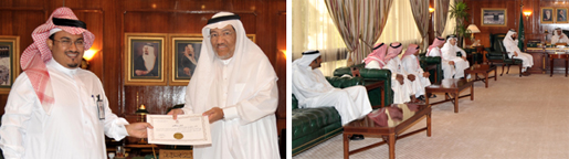 استقبل أمين العاصمة المقدسة الدكتور أسامة البار بمكتبه منسوبي إدارة المسالخ بأمانة العاصمة المقدسة الذين ساهموا في نجاح أعمال الأمانة خلال موسم حج عام 1430هـ، حيث قام معاليه بتسليمهم الهدايا التذكارية وشهادات التقدير نظير ما قدموه من جهود ساهمت بشكل كبير في نجاح خطة الأمانة. وقد شكر معاليه الموظفين المكرمين على ما قدموه في تنظيم أعمال المسالخ، خاصة أنها تشكل عنصراً مهماً في الحفاظ على الإصحاح البيئي، كما حثهم على بذل المزيد من الجهد في سبيل الارتقاء بمستوى الخدمات المقدَّمة لضيوف الرحمن وتأمين الأجواء الصحية لهم. وقال إن ذلك يأتي من خلال حرص الأمانة ومسؤوليها ومنسوبيها كافة وتقديرهم للمسؤولية الوطنية وأداء واجبهم في خدمة المواطنين والمقيمين وزوار بيت الله الحرام بما يعكس مدى إخلاصهم وتفانيهم في أداء ما أُنيط بهم من أعمال. وقد جاءت أسماء الموظفين المكرمين كما يأتي: