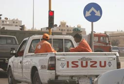 عدسة «الجزيرة» التقطت مخالفة لسيارة تابعة لأمانة المنطقة الشرقية وهي تحمل على متنها عمال نظافة تتجول بهم في الشوارع العامة لمدينة الدمام، وقائد السيارة غير مبال بأنظمة المرور، إضافة إلى أن هذا التصرف غير المسؤول يشوه المنظر العام خصوصاً أنه حدث في منطقة تعتبر سياحية، وما زالت هذه الظاهرة تتكرر بسيارات تحمل شعارات حكومية، مما يثير تساؤلاً حول دور الجهات المسؤولة حيال تلك المخالفات.