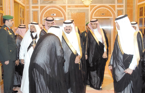استقبل صاحب السمو الملكي الأمير سلطان بن عبدالعزيز آل سعود ولي العهد نائب رئيس مجلس الوزراء وزير الدفاع والطيران والمفتش العام بقصر اليمامة أمس أصحاب السمو الملكي الأمراء وأصحاب المعالي الوزراء وكبار موظفي الديوان الملكي وديوان سمو ولي العهد وديوان رئاسة مجلس الوزراء وكبار قادة وضباط الحرس الملكي الذين قدموا للسلام على سموه - رعاه الله - وتهنئته بسلامة الوصول إلى الرياض.حضر الاستقبال صاحب السمو الملكي الأمير نايف بن عبدالعزيز النائب الثاني لرئيس مجلس الوزراء وزير الداخلية ومعالي وزير الدولة عضو مجلس الوزراء الدكتور مساعد بن محمد العيبان ومعالي رئيس ديوان سمو ولي العهد الأستاذ علي بن إبراهيم الحديثي ومعالي نائب رئيس ديوان سمو ولي العهد الأستاذ حمد بن عبدالعزيز السويلم ومعالي السكرتير الخاص لسمو ولي العهد الأستاذ محمد بن سالم المري.