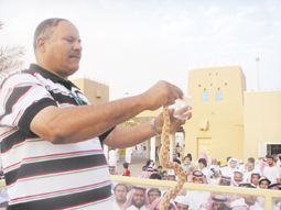يشارك قسم علم الحيوان بكلية العلوم في جامعة الملك سعود بعرض عن الثعابين في المملكة العربية السعودية ضمن فعاليات مهرجان الجنادرية (25).. وتعرض يومياً أمام مبنى وزارة التعليم العالي على منصة خاصة للعرض.. ويقوم بالعرض الأستاذ جمال على طلبة الفني بالقسم وأحد الخبراء في هذا المجال، الذي بيَّن لـ»الجزيرة» بأن فقرات العرض تتحدث عن الثعابين في المملكة التي يبلغ عددها (55) نوعاً من الثعابين منها (18) نوعاً ساماً.. (10) سامة منها في الخليج العربي.. و(8) أنواع سامة في الصحراء السعودية مردفاً بقوله: تمتاز الأفاعي بأن رأسها مثلث والجسم قصير والذيل صغير.. فجميعها سام جداً، بينما الثعابين ذات اللون الأسود فهي سامة، ويوجد (37) نوعاً منها (7) أنواع نصف سام و (30) نوعاً غير سام، وأضاف بأن الثعابين بطبيعتها ليست هجومية كما يعتقد بعض الناس بأنها هجومية، ولكن بطبيعتها فهي خجولة ولا تفكر بالهجوم إلا إذا تعرضت للخطر.. وتطلق صوتاً ينبهك ب: (أنا) أفعى سامة.