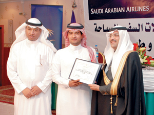 أقامت الخطوط الجوية العربية السعودية في تبوك حفلها السنوي تكريماً لشركاء النجاح من وكالات السفر والسياحة، وذلك في قاعة الاحتفالات بفندق صحاري تبوك. حيث أقيم حفل خطابي بهذه المناسبة، حيث ألقى مدير السعودية في تبوك والوجه وطريف عبد القادر بن عمر الجراح كلمته رحب فيها بالحضور، وبيّن أن النجاح الذي تحقق للسعودية كان برؤية واضحة وعمل فريق واحد ويد واحدة، مشيراً إلى الجهود المبذولة من الجميع في قطاع السعودية أو في قطاع الوكالات سواء أكانت التي في تبوك أو في الوجه أو طريف أو في بقية المحافظات. بعد ذلك ألقيت كلمة الوكالات ألقاها محمد الخناني مدير وكالة الخناني بطريف الذي قدم شكره لمدير السعودية على هذا الاحتفال وهذا التكريم، مشيراً إلى أن دوره واضح في تذليل العقبات لتحقيق الأهداف المطلوبة. وقال بأن الخطوط السعودية تواجه الآن عرضاً كبيراً مقابل الطلب وخصوصاً مع تحديث أسطولاتها ومع متغيرات الخصخصة. بعد ذلك شاهد الجميع عرضاً مرئياً عن انجازات «السعودية» بتبوك حيث بلغ عدد الركاب القادمين والمغادرين عبر الخطوط السعودية ما يقارب 635 ألف راكب في عام 2009م, فيما بلغت عدد الرحلات القادمة والمغادرة لمحطة تبوك 7638 رحلة، بعد ذلك قدم المدرب المهندس ممدوح شلال العنزي دورة تدريبه مصغرة لمنسوبي الخطوط والوكالات يوضح فيها أساليب التعامل مع العميل، وعن الخدمات التي من المفترض أن يقدمها موظف الخطوط وموظفي الوكالات. تلا ذلك تكريم الوكالات المتميزة وشملت وكالة الطيار ووكالة بيت عمره ووكالة كساب وبعض الوكالات الأخرى، كما تم تكريم «صحيفة الجزيرة» نظير الجهود والتعاون والتغطيات الإعلامية التي تقدمها مع الخطوط الجوية العربية السعودية.