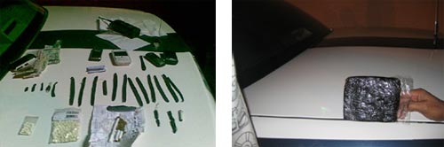 كان ذلك عندما استوقفت فرق دوريات الأمن سيارة من نوع جيب لاندكروزر موديل 93 اللون أبيض يرافقه شخصان وبتفتيش السيارة وجد تحت مرتبة الأول كيسي حبوب كبتاجون، الكيس الأول بداخله «155» والكيس الثاني بداخله «23» حبة، كما وجد مجموعة قطع حشيش مخدر تزن (122) جرام وحشيش تزن (0.5) جرام، تم حجز السيارة بحجز وادي لبن وسلم الأشخاص بالمضبوطات لمكافحة المخدرات بغرب الرياض. وأثناء قيام إحدى فرق دوريات الأمن بعملها استوقفت سيارة نوع أفيو موديل 2008 وعند تفتيش قائدها وجد بحوزته ثلاث قطع حشيش سلم مع المضبوطات لمكافحة المخدرات كما ضبطت إحدى فرق دوريات الأمن شخصاً يسير على الأقدام وبتفتيشه وجد بحوزته قطعة حشيش تزن (4.4) جرام وسلم بالمضبوطات لمكافحة المخدرات بشرق الرياض.