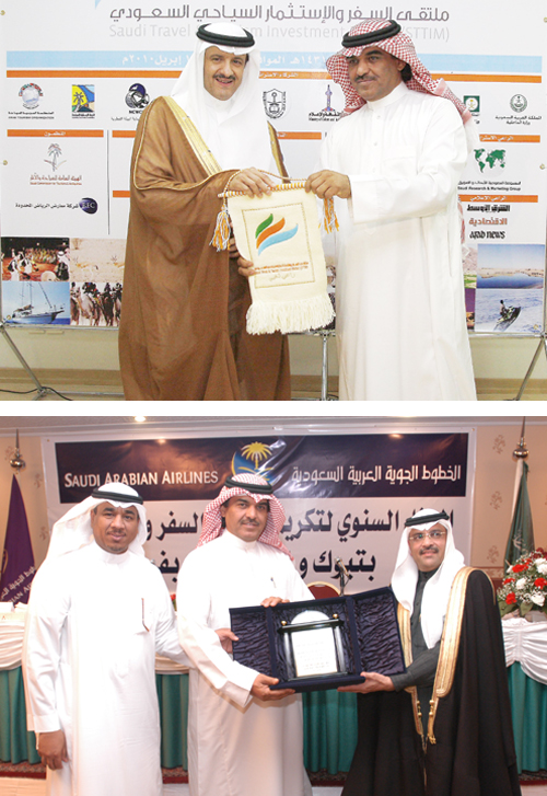 كرم صاحب السمو الملكي الأمير سلطان بن سلمان بن عبدالعزيز رئيس الهيئة العامة للسياحة والآثار، مجموعة الطيار للسفر والسياحة لرعايتها لملتقى السفر والاستثمار السياحي السعودي 2010م.