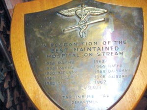 عرض في جناح «صحة الحدود الشمالية» في مهرجان الجنادرية درعاً تذكارية حصلت عليها مستشفيات منطقة الحدود الشمالية قبل 52 عاماً كأفضل مستشفيات العالم العربي في ذلك الوقت.أوضح ذلك ل(الجزيرة) خالد الحجي المشرف على جناح صحة الشمال في مهرجان الجنادرية، مضيفاً أن هذه الجائزة وضعتها شركة «التابلاين» لعدد من المستشفيات في المنطقة الشمالية، وتختص الجائزة بجودة الأداء, وتضمنت معلومات الدرع حصول مستشفى رفحاء ثلاث مرات على جائزة أفضل مستشفى في الأعوام 1958 و1959و1964, وحصول مستشفى بدنة على الجائزة عام 1960، ومستشفى طريف عام 1961م.