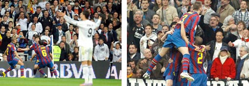 خطا برشلونة خطوة كبيرة نحو الاحتفاظ بلقب الدوري الإسباني عندما حسم الكلاسيكو لصالحه بفوزه على مضيفه وغريمه التقليدي ريال مدريد 2-صفر أمس في افتتاح المرحلة الحادية والثلاثين من الدوري وكعادته قاد النجم الأول الأرجنتيني ليونيل ميسي البرشا لفوزه إضافة إلى صانع ألعابه الدولي تشافي هرنانديز الذي صنع هدفي الفوز اللذين سجلهما الأرجنتيني ليونيل ميسي وبيدرو رودريغيز.