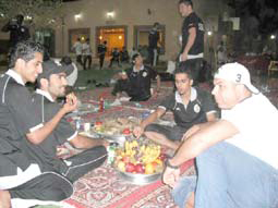 حاول مدرب فريق السد الروماني اولاريو كوزمين إخراج لاعبيه من حالة الشد والترقب لمواجهة اليوم أمام الهلال على أرض الأخير وبين جماهيره بعد أن دعا كوزمين جميع أفراد البعثة لوجبة عشاء دسمة من (المفاطيح) في إحدى الاستراحات الراقية بشرق الرياض مساء أمس الأول وذلك بعد أن وصلت البعثة ظهر (الأحد) وتوجه مدرب الفريق كوزمين مباشرة إلى أحد البنوك لتوفير مبالغ هذه المأدبة التي انتقل لها جميع اللاعبين بعد الفراغ من التدريب الأول الذي أجري على ارض استاد الأمير فيصل بن فهد.