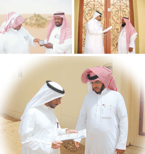 أما المراقب عايض بن محمد الخبيزي فقال إن منطقة عملي في مسميات سكانية متفرقة خارج المنطقة العمرانية ومن الصعوبات في مثل هذا الميدان وجود بعض المزارع مغلقة الأبواب ومحاطة بحواجز ترابية وأسلاك شائكة مما يضطرنا إلى الدخول مشياً على الأقدام لمسافات قد تتجاوز نصف الكيلومتر لترقيم وتسجيل وحدة عقارية واحدة داخل هذه المنشأة.