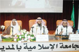 نظمت عمادة شؤون المكتبات بالجامعة الإسلامية ندوة بعنوان «الإعلام السعودي في خدمة القرآن والسنة» وذلك بالتعاون مع الجمعية العلمية السعودية للقرآن الكريم وعلومه تحدث فيها الدكتور سليمان العيدي المشرف على قناتي القرآن والسنة ومستشار وزير الثقافة والإعلام عن تاريخ الصحافة والإعلام في المملكة وملمحاً بإيجاز عن عصر الصحافة المؤسسية وأكد العيدي أن القرآن والسنة لم يغب عنهما اهتمام الإعلام السعودي حتى نقول إن قناتي القرآن والسنة هما بداية الاهتمام بهما، مرجعاً سبب إنشائهما إلى ظهور الحاجة للتخصص في ظل هذا الانفجار الفضائي. فيما قال الشيخ عبدالله الدوسري مدير إذاعة القرآن الكريم: إن الإعلام السعودي أولى القرآن والسنة وعلومهما فائق العناية في قنواته وإذاعاته، مؤكداً أن أكثر من خمسة عشر ساعة من بث إذاعة القرآن الكريم اليوم بما نسبته 60% هي لتلاوات القرآن الكريم.