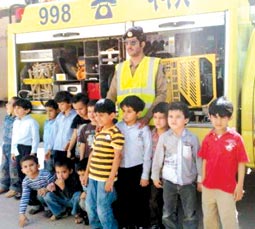 وأوفدت إدارة الدفاع المدني بحي النسيم سيارة إطفاء بكامل طاقمها الذي صحب معه المطويات الإرشادية والمطبوعات التعريفية بنشاط الدفاع المدني وكيفية الاتصال والتعاون، وكيفية تطبيق إجراءات الأمن والسلامة في البيوت والمدارس وأماكن العمل. وتم تقديم شرح مبسط عن مفاهيم الدفاع المدني مناسب لعقول وأذهان الأطفال، الذين أخذوا يرددون أثناءه: «رقم الدفاع المدني 998، لازم نبعد عن المواقد والأسلاك والكابلات الكهربائية، لازم نفسح الطريق لسيارة الإطفاء عند سماع صفارة الإنذار».