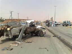 أصيب مواطنان ووافد باكستاني صباح الثلاثاء لدى تصادم بين ثلاث سيارات عند تقاطع شارع الملك عبدالله مع شارع الأمير عبدالله بن مساعد برفحاء، ممّا أدّى إلى اشتعال إحداها. وكان قائد سيارة من نوع كامري كان يسير بسرعة عالية على طريق الملك عبدالله فاصطدم بسيارة من نوع هايلكس يقودها وافد قادم من الطريق الآخر، ودفع ذلك سيارته إلى الجانب المعاكس ممّا أدى إلى اصطدامها بسيارة كامري أخرى عابرة.