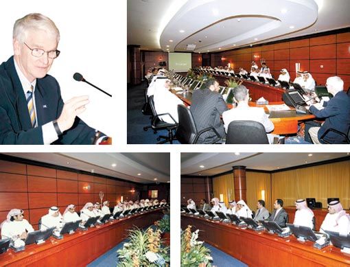 وبدأ المحاضر بتقديم كلمة موجزة تحدث فيها عن نشأة وسائل البث الحقيقي للصحافة في دول العالم وبالأخص في الولايات المتحدة الأمريكية، وكيف كانت الصورة (التلغراف) تعلب دوراً مهماً كوسيلة نقل رئيسية كما بين الصورة التي كانت الصحف الأمريكية ترتبط بها مع المجتمعات الصغيرة، وقال: أشعر بالراحة عندما أتحدث عن التليغراف هنا في المملكة العربية السعودية، فقد لعب دوراً مهماً جداً في تاريخ المملكة خلال حكم الملك عبدالعزيز.. وبعضكم يعرف عن ذلك أكثر مما أعرفه أنا.