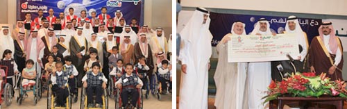 تسلّم الأمير سلطان بن سلمان بن عبد العزيز رئيس مجلس إدارة جمعية الأطفال المعوقين شيكاً بأكثر من خمسة ملايين ريال سعودي حصاد برنامج «دع الباقي لهم» عن الفترة من عام 2007م إلى نهاية 2009م من الدكتور محمد أمين قشقري الرئيس التنفيذي لقطاعي التجزئة والبلاستيك في مجموعة صافولا والرئيس التنفيذي لشركة العزيزية بنده المتحدة.