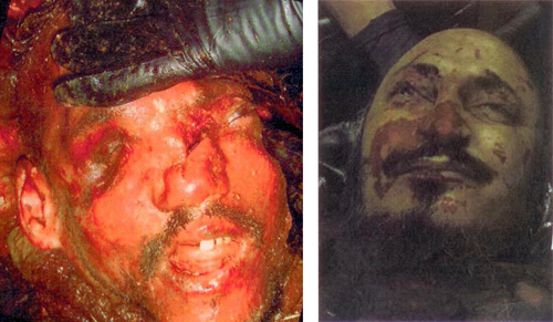 وعرض المالكي صورا لجثتين أكد أنهما جثتا البغدادي والمصري بعد مقتلهما.