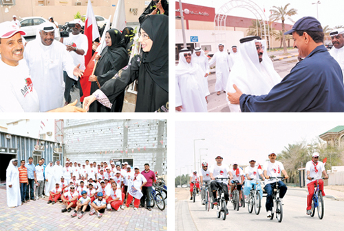 وبدأت الجولة بمحافظة المحرق ومرت بعدة نقاط منها دار يوكو لرعاية الوالدين حيث استقبل القائمون على الدار ومنتسبيها وفود الجوالة والدارجات بالمشموم والياسمين مصحوبة بالأهازيج الشعبية التراثية وعبروا عن فرحتهم بالزيارة وسعادتهم للمشاركة في فعاليات يوم البحرين يوم الجمعة المقبل بساحة الفورمولا.