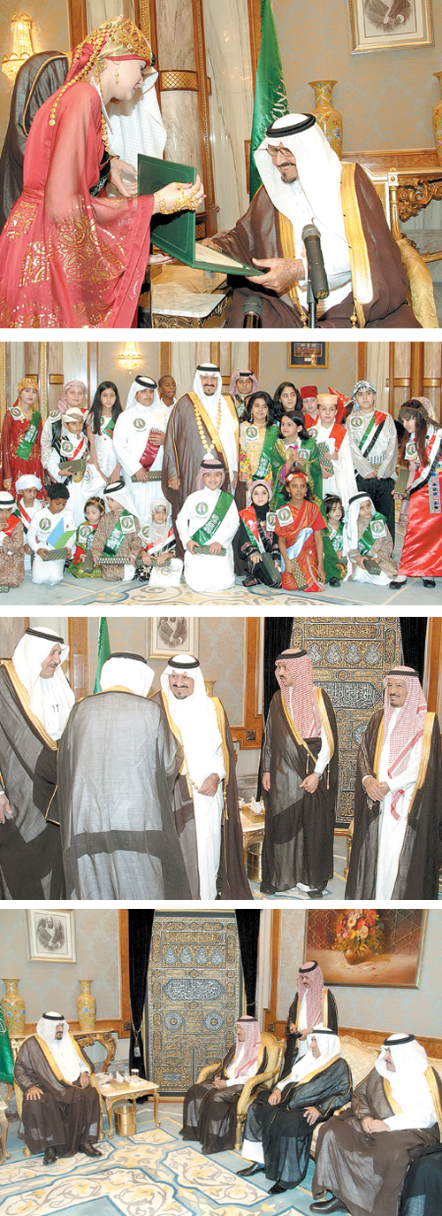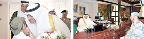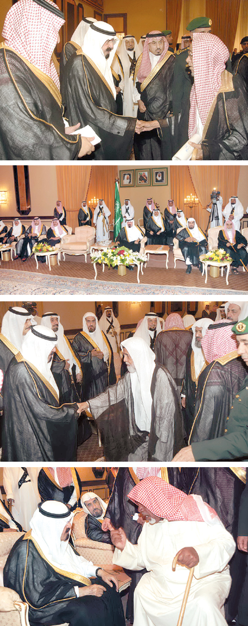 استقبل خادم الحرمين الشريفين الملك عبدالله بن عبدالعزيز آل سعود -حفظه الله- في الديوان الملكي بقصر الخليج مساء أمس أصحاب الفضيلة العلماء والمشايخ وكبار المسؤولين من مدنيين وعسكريين وجموعاً من المواطنين؛ الذين قدموا للسلام عليه -رعاه الله- وتهنئته بسلامة الوصول إلى المنطقة