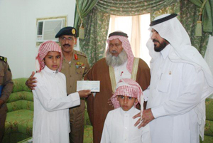 نيابة عن مدير عام الدفاع المدني الفريق سعد التويجري وبحضور وكيل محافظة بيشة محمد العثيم قدم مدير الدفاع المدني بمنطقة عسير اللواء عبد الواحد الثبيتي شيكا بمبلغ مائة ألف ريال مقدما من صاحب السمو الملكي مساعد وزير الداخلية للشؤون الأمنية الأمير محمد بن نايف تكريما من سموه للشهيد وكيل رقيب هذال بن مضف الأكلبي أحد منسوبي إدارة الدفاع المدني بمحافظة بيشة الذي استشهد خلال عملية إنقاذ لمحتجزين في سيل خلال الأمطار التي هطلت على محافظة بيشة مؤخراً.