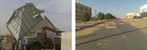 مصادر الدفاع المدني أكدت أن العاصفة التي شهدتها مراكز ظلم والموية لم تسفر عن أية إصابات - ولله الحمد - واقتصرت أضرارها على طيران سقف أحد المنازل، حيث باشرت الموقع الفرق بمساندة طوارئ الكهرباء، وتمت إعادة الوضع إلى طبيعته وحصر الأضرار.