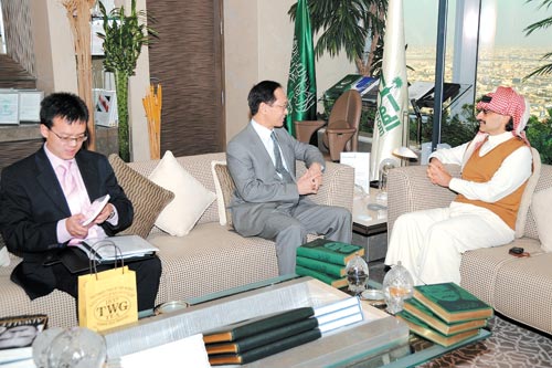في بداية اللقاء، شكر سعادة السفير الأمير الوليد على إتاحة الفرصة للقاء بسموه، وقدّم له خالص التقدير والامتنان لدعم سموه المتواصل. كما سلّم سمو الأمير خطاباً من دولة رئيس الوزراء السيد لي هسين لونج. وخلال اللقاء أثنى السفير على إنجازات سموه في كافة المجالات حيث يقوم سموه بدور كبير في التنمية الاقتصادية والاجتماعية. كما تطرق إلى استثمارات الأمير الوليد المحلية والإقليمية والعالمية وعلاقة سموه القوية بسنغافورة من خلال استثمارات شركة المملكة القابضة والتي تتضمن فندق الفورسيزونز وفندق رافلز في القطاع الفندقي، ومجموعة سيتي في القطاع المصرفي. ذكما أوضح الأمير أن افتتاح فندق رافلز في مكة المكرمة تحت إدارة فنادق فيرمونت رافلز الدولية (تؤكد قوة العلاقة. وسيكون الفندق من 76 طابقاً وارتفاعه يعادل 577 متراً ليصبح بذلك أحد أطول الأبراج في العالم، وستضمن المواصفات الفريدة والمميزة لهذا الفندق مكانة كأحد أهم المعالم المهمة في المنطقة. وتشمل هذه المواصفات ساعة بحجم 40 متراً يمكن رؤيتها بوضوح من بعد 17 كيلو متراً وأكبر من ساعة بيج بين بلندن بـ40 مرة.