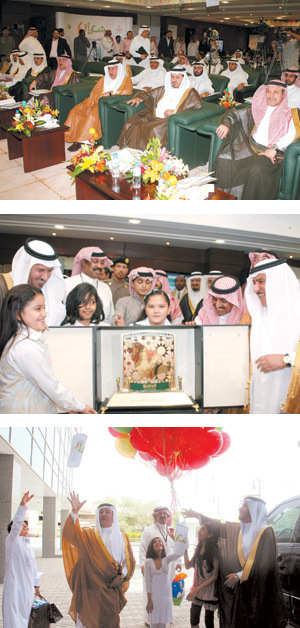 جاء ذلك خلال تدشين معالي وزير الصحة د. عبدالله الربيعه صباح أمس الأسبوع العالمي للتحصين وحملة التوعية الصحية بوزارة الصحة وحضور معالي نائب وزير التربية والتعليم د. فيصل بن معمر وعدد كبير من المسئولين والمختصين، حيث شمل برنامج الافتتاح على أوبريت (كثر الله خيرك ياوطن) الذي يحكي تطور الخدمات الصحية وخاصة الوقائية منذ عهد المؤسس وحتى عهدنا الزاهر بالخير أدته مجموعة من أطفال مملكة الإنسانية، عقب ذلك قدم مجموعة من الأطفال درع المناسبة لصاحب السمو الأمير فيصل بن عبدالله وزير التربية والتعليم تسلمه معالي نائبه د. بن معمر ودرعاً آخر لمعالي وزير الصحة، ثم قدم د. الربيعه درعاً تكريمياً للمنظمين، عقب ذلك أطلق معالي د. الربيعة ومعالي د. بن معمر مع الأطفال بالونات في الهواء تحمل شكرا لكم.