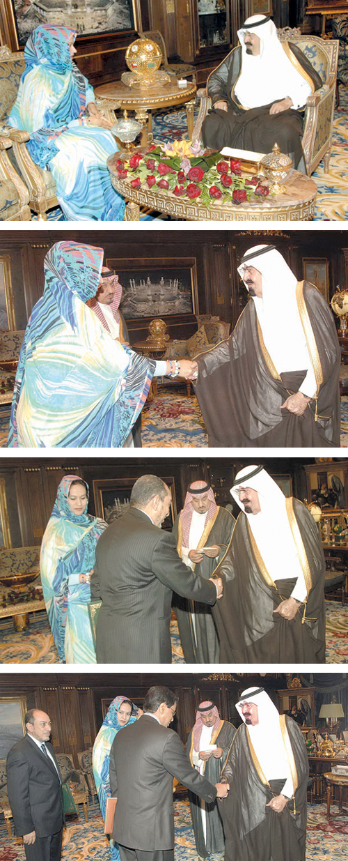 تسلم خادم الحرمين الشريفين الملك عبدالله بن عبدالعزيز آل سعود -حفظه الله- رسالة من فخامة الرئيس محمد ولد عبدالعزيز رئيس الجمهورية الإسلامية الموريتانية.وقامت بتسليم الرسالة لخادم الحرمين الشريفين -أيده الله- معالي وزيرة الشؤون الخارجية والتعاون الموريتانية الناهة بنت مكناس
