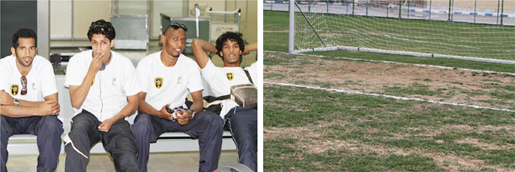 من جهته أوضح مدير الكرة حمد الصنيع أن أرضية ملعب التدريبات غير صالحة على الإطلاق لممارسة كرة القدم، مشيراً إلى أنه قام بالاتصال بمراقب المباراة منعم فاخوري، وشرح له المشكلات التي واجهت الفريق من سوء أرضية ملاعب التدريبات لاتخاذ القرار المناسب, مضيفاً أن تدريبات أمس كانت على الملعب الرئيسي الذي وصف أرضيته بالجيدة.
