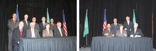 يوقعها بالنيابة عن لجنة التجارة الدولية الأستاذ عبدالعزيز الفهد، وبالنيابة عن مركز أعمال شيكاجو العالمي، رئيس المركز السيدة ريتا آثاس، وبالنيابة عن غرفة تجارة شيكاجو الدولي رئيس الغرفة السيد جيري روبر.