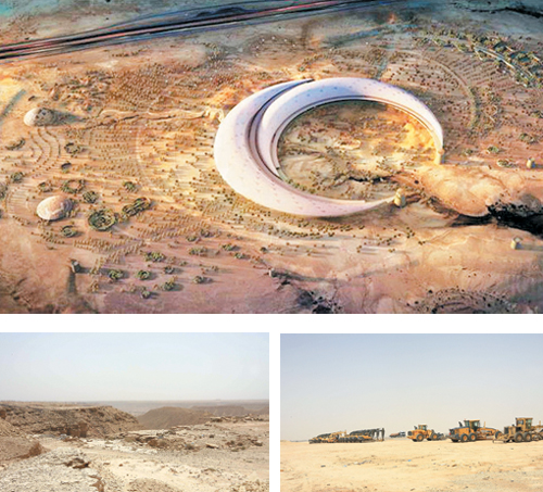 وحول التصاميم الهندسية للمراحل الابتدائية والمتقدمة للمشروع، تابع الدجين قوله «تعددت الأفكار التصميمية للمشروع من قبل المكاتب المحلية والعالمية وقد طرحت مسابقة دولية وكونت لجنة تحكيم وتم الإعداد لطرحها بدعوة العديد من مكاتب دولية وقد طلب من المكاتب المحلية التضامن مع المكاتب الدولية للدخول في هذه المسابقة وتقدمت 4 مكاتب ثم توالت المراحل الأخرى وصولاً إلى مرحلة التحكيم التي تتضمن الفرز وإعلان النتائج وقد تم طرح الوثائق عبر لجنة ممثلة لكافة الأبعاد الثقافية والعلمية والدينية والمعمارية والبيئية والنباتية والاستثمارية» وأضاف «بعد الانتهاء مما سبق تم وضع مجموعة من التصورات الأولية عن المشروع عبر مجموعة من المكاتب ولجنة التحكيم التي حددت نقاط القوة والضعف وتم اختيار التصميم الفائز بنسبة تصويت بلغت 69 بالمئة بناء على المعايير سابقة الذكر».