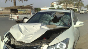وأثناء مباشرة اصطدمت سيارة من طراز «هايلوكس» بسيارتي دورية بينما كان أفرادهما يباشرون حادثة الدهس ويعملون على تفريق المتجمهرين.