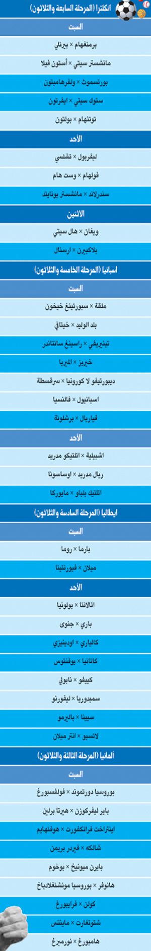 برنامج بطولات انجلترا وإسبانيا وإيطاليا وألمانيا