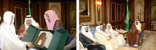 استقبل صاحب السمو الملكي الأمير نايف بن عبدالعزيز النائب الثاني لرئيس مجلس الوزراء وزير الداخلية بمكتبه بالوزارة أمس معالي الأمين العام لرابطة العالم الإسلامي الدكتور عبدالله بن عبدالمحسن التركي وأعضاء مجلس إدارة الهيئة العالمية لتحفيظ القرآن الكريم. وتم خلال اللقاء عرض مناشط