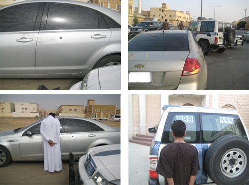 كان القبض على السيارة الأولى من بلاغ مواطن عن سماعه لإطلاق نار بحي طويق يصدر من سيارتين الأولى نوع فورد اللون أخضر والسيارة الثانية نوع كامري وبالتأكد من جهاز مركز المعلومات الوطني تبين أن السيارة مسروقة بعد صدمها من الخلف وصادر عليها تعميم من مركز شرطة السليمانية.