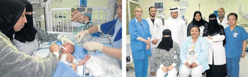إلى ذلك أكدت الدكتور هالة العالم رئيسة العناية المركزة للأطفال والمشرفة على علاج التوائم بعد عملية الفصل أن الطفلين أمجد ومحمد يتفاعلان بشكل طبيعي مع الفريق الطبي والوالدين وهذا يبعث على التفاؤل ومؤشر جيد للتحسن السريع في حالتهما الصحية، مشيرة إلى أن الساعات الحرجة بدأت تتلاشى تدريجياً، وقالت إن الطفلين ما زالا يتناولان مسكنات الألم والمهدئات التي تقلل من صدمة انفصال الجسدين.