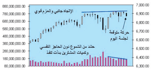 ودائماً ما يقسو على المؤشر العام، وبعد دمج حركة التداول لآخر 39 جلسة يتوقع أن يغلق السوق بالقرب من مستوى 6867 نقطة في جلسة واسعة التذبذب.