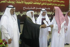 وفي ختام الحفل قدم مدير التربية والتعليم بمحافظة صبيا درعاً تذكارياً لمدير إدارة قضايا شاغلي الوظائف التعليمية بالوزارة، عقب ذلك بدأت ورش العمل التي تشتمل على المحاور التالية:
