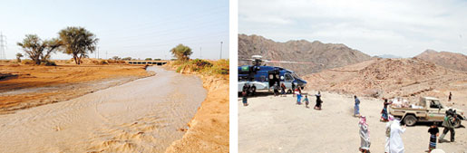 وأضاف مدير الدفاع المدني بمنطقة عسير, أن طائرات الدفاع المدني والوحدات الميدانية تعمل على مدار الساعة في نقل مواد الإغاثة للمحتجزين والمتضررين بالتعاون مع إمارة المنطقة إلى أقرب نقطة توزيع بمطل الحبلة الساحلي, بالإضافة إلى القيام بطلعات جوية مستمرة في المواقع المتضررة في وادي شيبة وقرية سريان وقرية راحة بتهامة قحطان بمحافظة سراة عبيدة, مشيراً إلى أنه تم بالفعل إيصال معونات غذائية وإغاثة عاجلة إلى 177 أسرة.