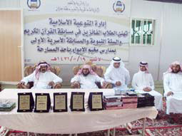 بحضور مساعد المدير العام للشؤون التعليمية في جازان صالح بن محمد القلطي كرمت إدارة التوعية الإسلامية بالإدارة العامة الطلاب الفائزين في المسابقة الأسرية الأولى لطلاب مدارس مخيم الإيواء بمراحله الثلاث، وذلك ابتدائية الخوية بالمخيم، حيث قام الأستاذ القلطي بتوزيع الجوائز والشهادات على الطلاب الفائزين متمنيا لهم التوفيق والتألق المستمر، وحضر حفل التكريم مدير إدارة التوعية الإسلامية بتعليم جازان موسى خمج ومساعد مدير مكتب التربية والتعليم بالأحد موسى قوفشي.