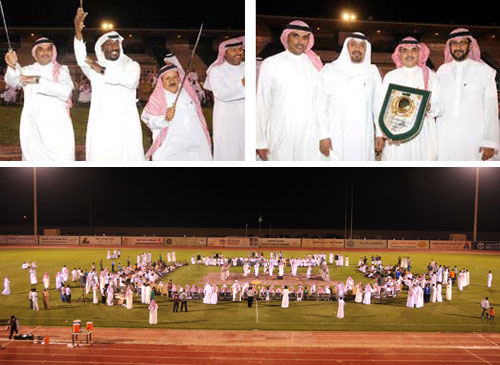 ازدان ملعب نادي النجمة مساء أمس الأول باحتفالية الفريق الكروي الأول الذي أقامه العضو الشرفي الفعال وعراب الصعود سليمان الزيداني في ليلة من ليالي الوفاء التي أقيمت على أنغام السامري والعرضة النجدية وسط حضور جمع من أعضاء الشرف ومحبي النادي والجماهير النجماوية التي حضرت لتحيي لاعبي الفريق بمناسبة تحقيقهم بطولة أندية الدرجة الثانية وإحرازهم لرقم قياسي من النقاط وصل إلى 55 نقطة وصعودهم إلى دوري أندية الدرجة الأولى عقب غياب دام 5 سنوات، وذلك بمقر النادي في عنيزة، كما تم على هامش الحفل قيام رئيس نادي التعاون محمد السراح بتقديم العضوية الشرفية لعضو شرف النجمة سليمان الزيداني، كما تخلل الاحتفال إلقاء العديد من القصائد الشعرية وأداء للعرضة النجدية شاركت فيها إدارة النادي برئاسة ابراهيم السيوفي وأعضاء الشرف الذين تقدمهم العضو الشرفي الفعال محمد الجلالي والرئيس السابق صالح الواصل وفهد العايد وفهد العوهلي وعصام العطية ولاعبو الفريق الأول لكرة القدم والجهازان الفني والإداري كما شاركت رابطة المشجعين بأداء الأهازيج النجماوية التي رقص على أنغامها الحضور، كما تم منح العضوية الشرفية من نادي النجمة للعضو الشرفي الجديد فهد العوهلي الذي تقبلها مشيداً باحتفالية الزيداني ومشيرا إلى أنها غير مستغربة من أهل الوفاء.. عقب ذلك التقطت الصور التذكارية مع الدرع الذي حصل عليه الفريق ومن ثم توجه الجميع لتناول مأدبة العشاء التي أعدت بهذه المناسبة.
