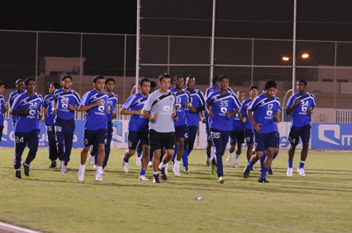 أرجأ مدرب الفريق الكروي الأول بنادي الهلال اختيار التشكيل النهائي للفريق لنزال الغد النهائي أمام الاتحاد إلى تدريب اليوم الأخير حيث ينتظر المدرب نتائج الجهاز الطبي واللياقي حول إمكانية مشاركة الثنائي نواف العابد وعمر الغامدي بعد أن انهيا برنامجهما العلاجي واكتفيا أمس بالدوران حول المضمار وسيتحدد اليوم مدى إمكانية دخولهما في حسابات الجهاز الفني ولو على مقاعد البدلاء على اقل تقدير وفي المقابل يغيب محمد نامي ومحمد العنبر عن المواجهة النهائية لحاجتهما للمزيد من الجرعات الطبية. وكان الفريق الأزرق قد أجرى تدريبه أمس في الفترة المسائية بحضور ومتابعة رئيس النادي الأمير عبدالرحمن بن مساعد وبعض الشرفيين وشهد المران إقامة مناورة على كامل مساحة الملعب، ووفقا لمصادر (الجزيرة) فإن المدرب الهلالي اعتمد كثيرا على عبداللطيف الغنام وأحمد الفريدي في منطقة محور الارتكاز حيث يتوقع أن يكون التشكيل على النحو التالي: (العتيبي - الزوري - المرشدي - هوساوي - يونج بيو - الغنام - الفريدي - الشلهوب - نيفيز - ويلي - ياسر) في حين ينتظر أن يكون خالد عزيز على مقاعد البدلاء في حال تأكد غياب الغامدي.